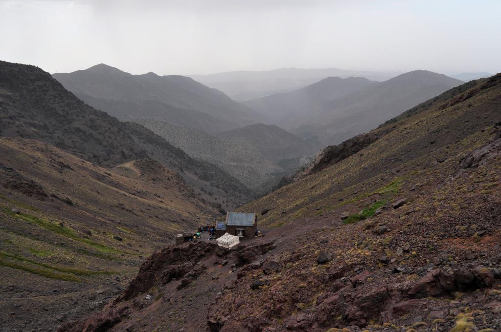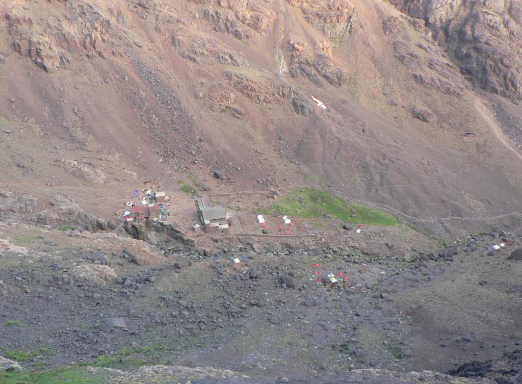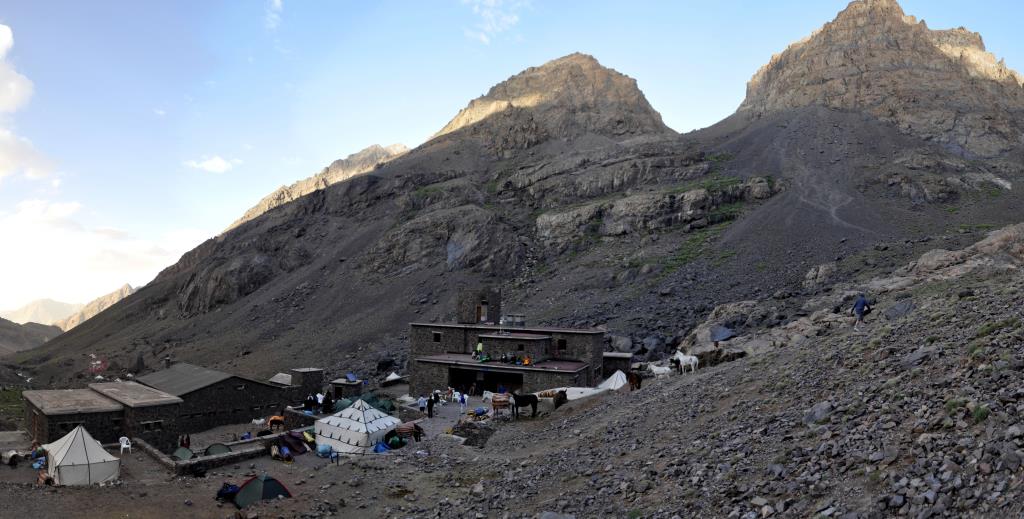 Today we crossed the Aguelzim pass (3550m)99 tortous switchbacks!! where we eventually enjoyed panoramic views of the Toubkal Massif. We then descend to Toubkal Base Camp. The busy Neltner refuge, which sits at an altitude of 3207m