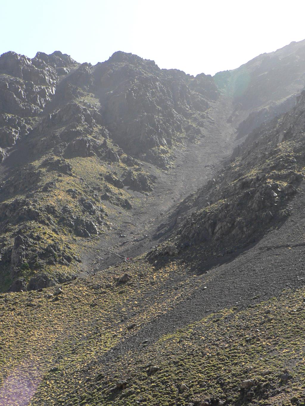 The trail is good though dusty. To keep the weight on your feet to a minimum, in my opinion if you have strong ankles not prone to twist, you would be much better off wearing a quality pair of approach shoes or lightweight fabric boots. The ascent of Toubkal in summer is not technically difficult. The view from the summit is pretty impressive, especially looking south towards the infinite expanse of the Northern Sahara.