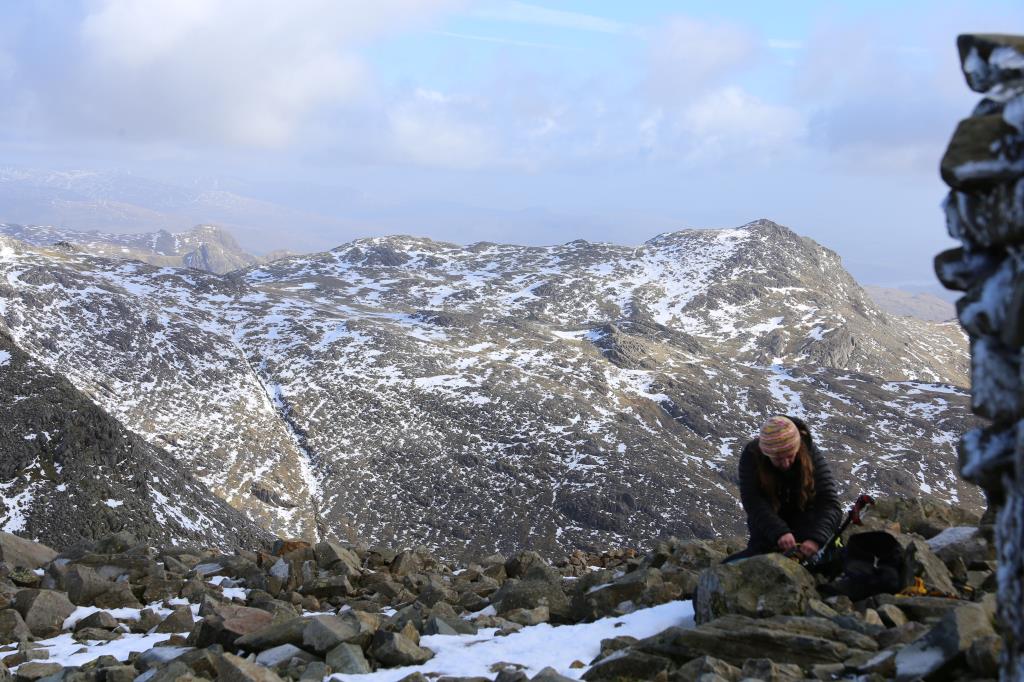 The group went on ahead then waited again for directions at divide in path at Hollowstones to Mickledore. The group was reasonably well equipped but without crampons or ice axes. In the end I shadowed the group to the summit, although slow going in snow they made the summit and then descended via same path. Left group at Lingmell Col they were happy to descend themselves.