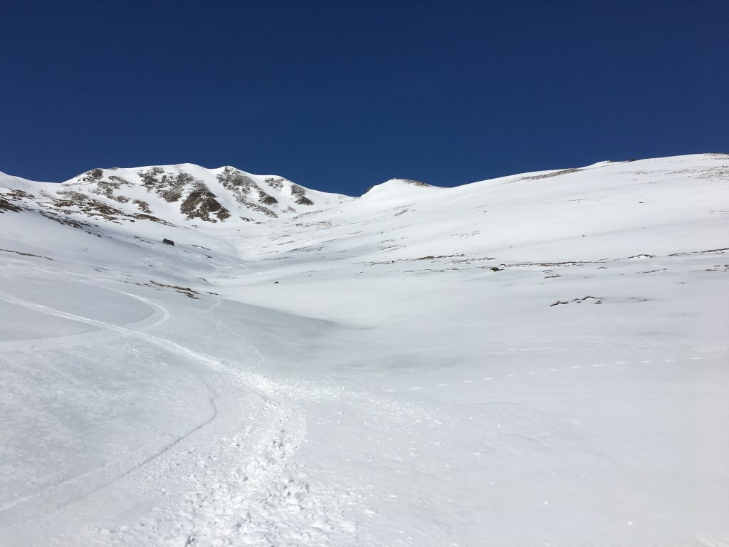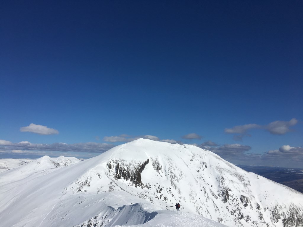 Took advantage of the excellent spring conditions to head out onto Ben Lawyers for the day. Snow line was situated at around 600m, requiring a short carry before skinning up the SW ridge then descending Coire a Chonnaidh on perfect spring snow.