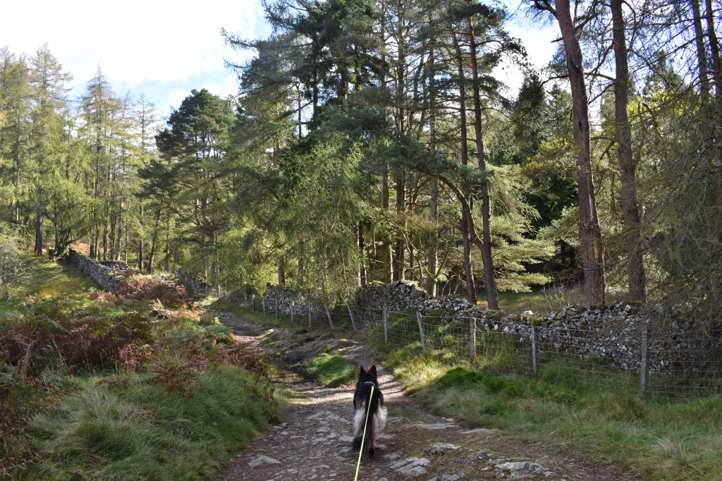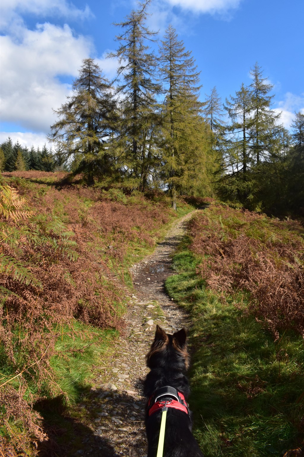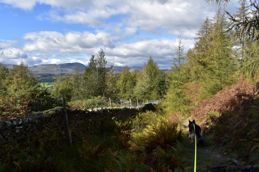 Another walk I was trying for my book for people with larger dogs! Using the OS 1:25000 map. I had my oldest Alsatian with me. We began from Hawkshead and walked along the road to Colthouse Plantation then headed up through the trees to the East passing Spring Wood to Rough Hows. At Guide Posts we headed North and made our way to Old Intake and then onto Latterbarrow. From here we descended to the West and onto Loanthwaite Lane, before returning through fields passing Scar House Lane and back into Hawkshead.