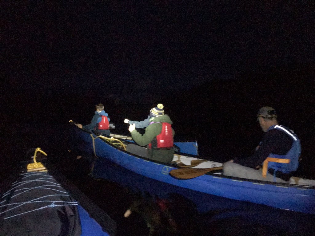 Night Navigation included both in canoes, and along the Great Glen Way, using a map and compass, and pacing and timing.