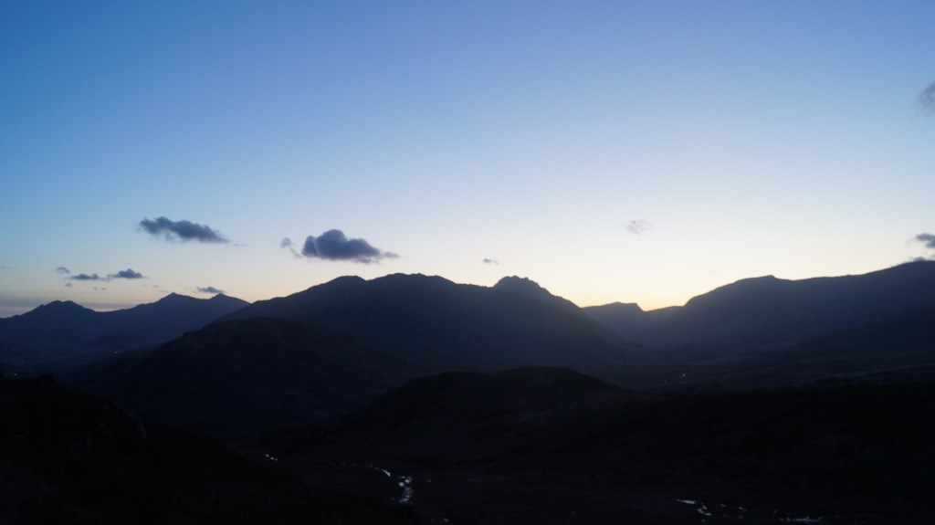 The Carneddau (lit. "the cairns"; Carneddau is a Welsh plural form, and is sometimes anglicised to Carnedds) are a group of mountains in Snowdonia, Wales. They include the largest contiguous areas of high ground (over 2,500 or 3,000 feet (910 m) high) in Wales and England, as well as six or seven of the highest peaks in the country—the Fourteen Peaks. The range also encloses a number of lakes such as Llyn Cowlyd and Llyn Eigiau, and the Aber Falls waterfalls. It is delimited by the Irish Sea to the north, the Conwy valley to the east, and by the A5 road from Betws-y-Coed to Bethesda to the south and west. The area covers nearly 200 square kilometres, about 10% of the area of Snowdonia.
