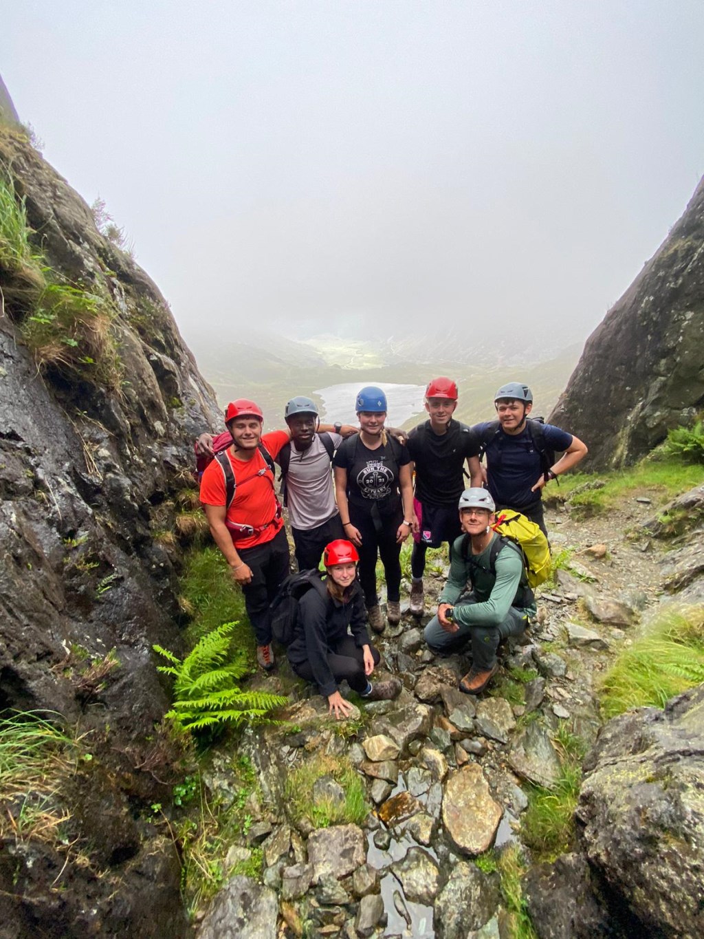 7 students between Rebecca Cole’s WMCI @Roam_Mountains. Ogwen cottage to Idwal Slabs and up the the side with suicide wall to are right. Ascending the obvious polished rock. Rebecca and I took turns in spotting. The weather was mostly clagged in. Route is in the GPS box.